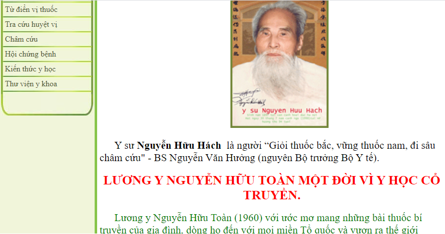 Website của phòng khám đông y Nguyễn Hữu Toàn. Chuyên trang cũng cung cấp phương pháp điều trị bằng thuốc đông y; theo dõi bệnh nhân và kiểm chứng hiệu quả chữa bệnh.